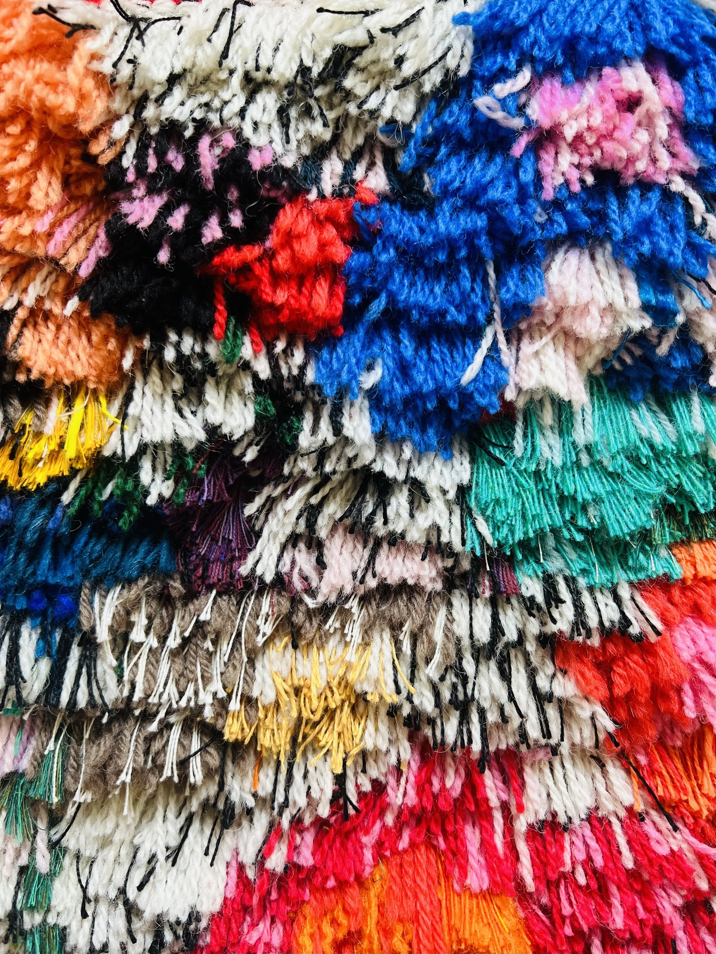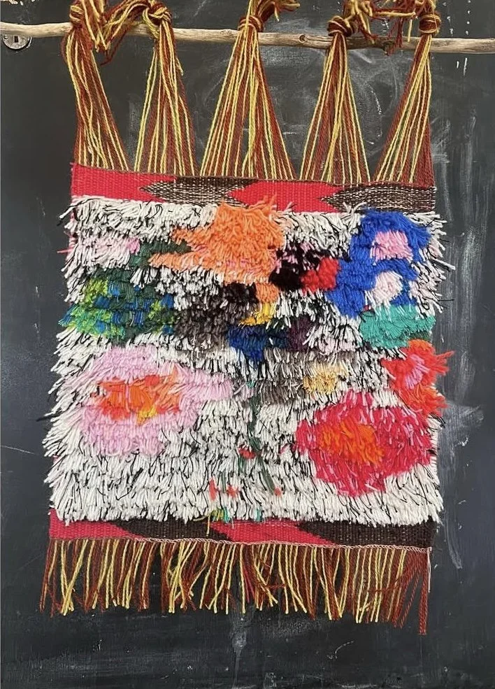 Wool and reclaimed yarns. Handwoven in rya. One of a kind. 30 X 40 cm (warp up to 60 cm). Price: 6 500 SEK (Sweden), 8200 SEK ( international, shipping included)